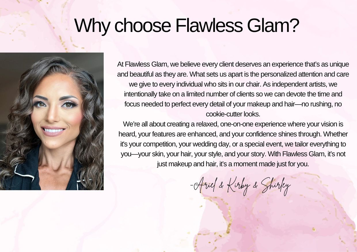 Hi, I’m a licensed makeup artist with a passion for enhancing natural beauty and helping people feel their absolute best. While I specialize in competition stage glam—creating bold, flawless looks that shine under the lights—I’m also experienced in a wide range of makeup styles, from soft glam to special events.